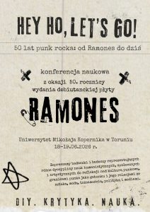 Katedra Etnologii i Antropologii Kulturowej UMK, Katedra Mediów i Badań Kulturowych UKEN oraz Wydział Pedagogiczny UW zapraszają na konferencję poświęconą analizom muzyki punkowej, pt. „Hey Ho, Let’s Go! 50 lat punk rocka: od Ramones do dziś”. Wydarzenie organizowane z okazji 50. rocznicy wydania debiutanckiej płyty grupy Ramones. Konferencja odbędzie się w Toruniu w terminie 18-19 czerwca 2026 r.