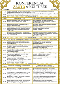 Złoto pojmujemy bardzo szeroko – zarówno jako kruszec, jak i metaforę czegoś wartościowego, związanego ze statusem społecznym, długim trwaniem tradycji i idei. Złoto można rozumieć również jako skarb, rzadkie, lecz pożądane wartości i style życia, do których się dąży – doskonałość, miłość, a dziś może również bezpieczeństwo. Tak rozumiane złoto może stać się jednak obiektem manipulacji lub przedmiotem propagandy – falsyfikatem i imitacją. Jest też symbolem materializmu i sławy, co odnosi nas do kapitalizmu, kultury politycznej i medialnej. Złoto nie jest więc symbolem jednoznacznym: z jednej strony odwołuje do sacrum, z drugiej do profanum, dlatego stanowi ciekawy klucz interpretacyjny kultury współczesnej. Rewersem złota jest dla nas błoto – to co nieczyste i związane z trudnościami, lecz potencjalnie oczyszczające i umożliwiające transformację. Proponujemy więc dziesięć zagadnień tematycznych, związanych ze znaczeniem złota w kulturze: