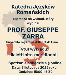 oraz na wykład Pana Profesora ANGELO VARIANO pt. “Note di dialettologia italiana meridionale” w dniu 27.11.2025 o godz. 16:45