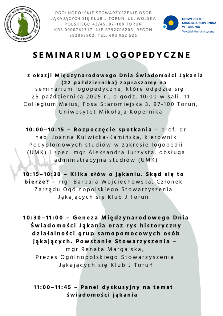 Słuchacze studiów podyplomowych w zakresie logopedii są włączani w inicjatywy naukowe, np. udział i współorganizację konferencji naukowych, współtworzenie naukowych publikacji oraz prowadzenie międzynarodowych badań naukowych. Jako przykłady można wskazać konferencje logopedyczne: Terapia, wspomaganie, wsparcie – różne drogi, jeden cel, Toruń 3 marca 2012, Muzyka w Logopedii. Terapia, wspomaganie, wsparcie – trzy drogi, jeden cel, Toruń 2 marca 2013, Zmienić jakość życia – społeczne korzyści terapii jąkania, Toruń 19 października 2013, połączoną z bezpłatnym poradnictwem w toruńskich gabinetach logopedycznych oraz z konsultacjami on-line oraz kongres logopedyczny Wieloaspektowość logopedii. Praktycy praktykom, Toruń 25 października 2014 – warto dodać, iż dwa ostatnie wydarzenia cieszyły się wyjątkowym zainteresowaniem – przyjęto na nie około pół tysiąca zgłoszeń; szkolenia i seminaria, np. publikacje naukowe i popularnonaukowe, np. w „Toruńskich Wieściach Logopedycznych”, na łamach pisma internetowego „Logopeda”, współtworzenie „Teczki pracy logopedy” oraz współtworzenie specjalistycznego pisma „Forum Logopedy”, a także wydawanie pokonferencyjnych tomów, np. (Wieloaspektowość logopedii); włączanie się w akcje społeczne, np. w Dzień Bezpłatnych Diagnoz Logopedycznych, Europejski Dzień Logopedy, Światowy Dzień Osób Jąkających się; włączanie się w cykliczne, profilaktyczne akcje miejskie, np. „Miesiąc dla zdrowia”; pracę wolontariacką w placówkach oświaty; organizowanie i prowadzenie przez absolwentów studiów szkoleń dla logopedów oraz wykładów o charakterze edukacyjnym, skierowanych do rodziców dzieci w wieku przedszkolnym i szkolnym oraz do nauczycieli; międzynarodową współpracę w zakresie poszukiwania nowatorskich metod w terapii logopedycznej z Kyiv City Clinical Psychoneurological Hospital Nr 1 (Kijów, Ukraina) oraz z Royal College of Speech and Language Therapists (Londyn, Wielka Brytania) i szereg innych.
