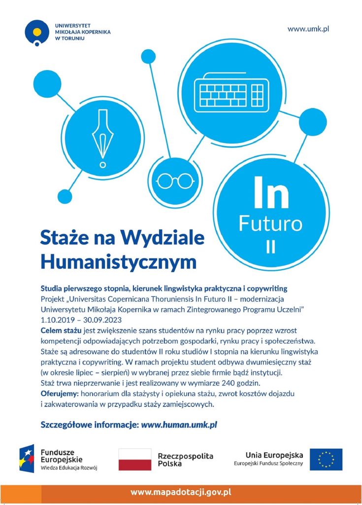 Staże studenckie realizowane w ramach projektu pn. „Universitas Copernicana Thoruniensis In Futuro II – modernizacja Uniwersytetu Mikołaja Kopernika w ramach Zintegrowanego Programu Uczelni – Zadanie 6 – Wydział Humanistyczny”