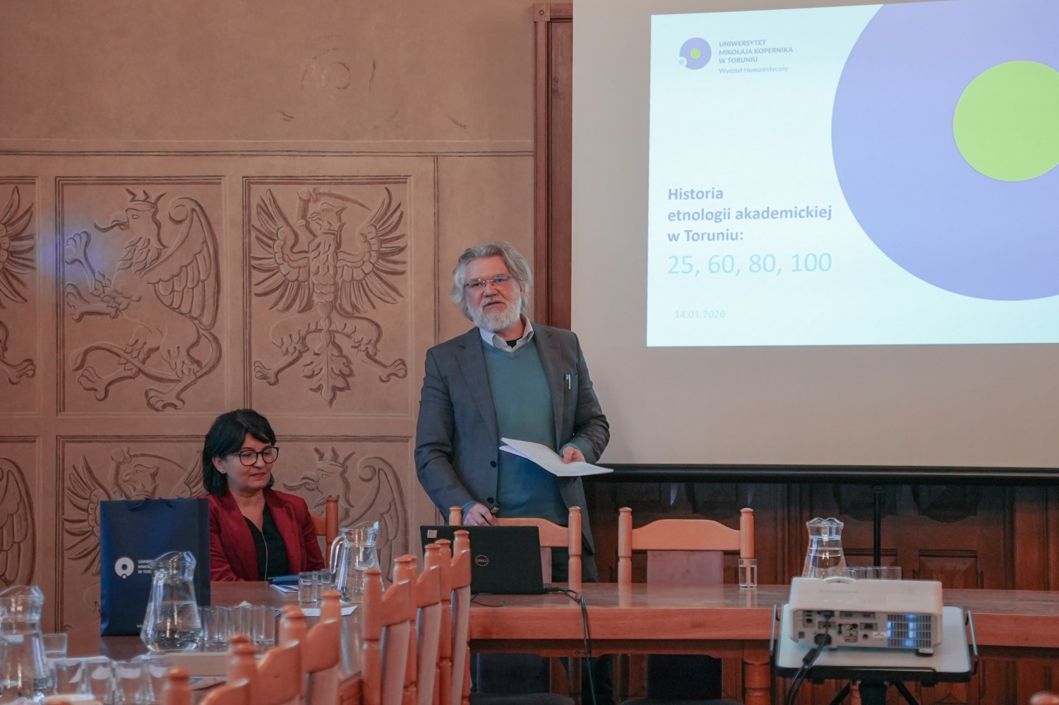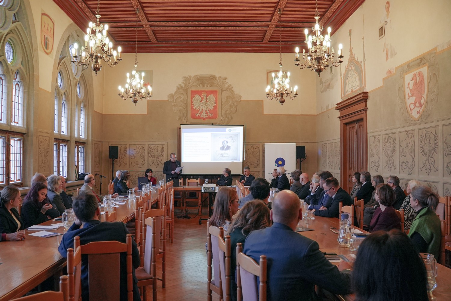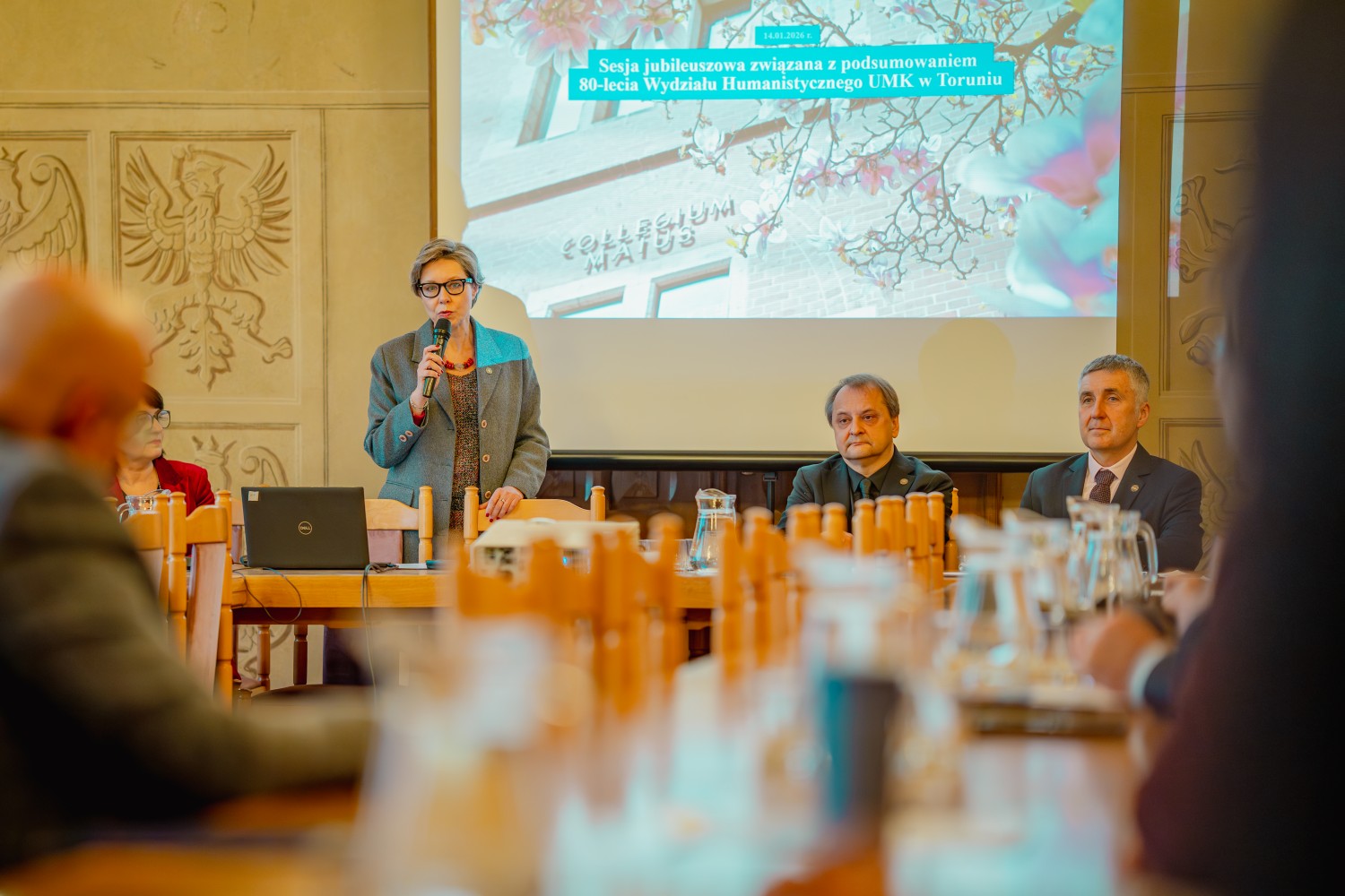 14 stycznia 2026 r. odbyła się jubileuszowa sesja podsumowująca 80 lat działalności Wydziału Humanistycznego UMK. Data uroczystości nie była przypadkowa – nawiązywała do uroczystej inauguracji pierwszego roku akademickiego na UMK, która miała miejsce 5 stycznia 1946 r. w auli Collegium Maius.