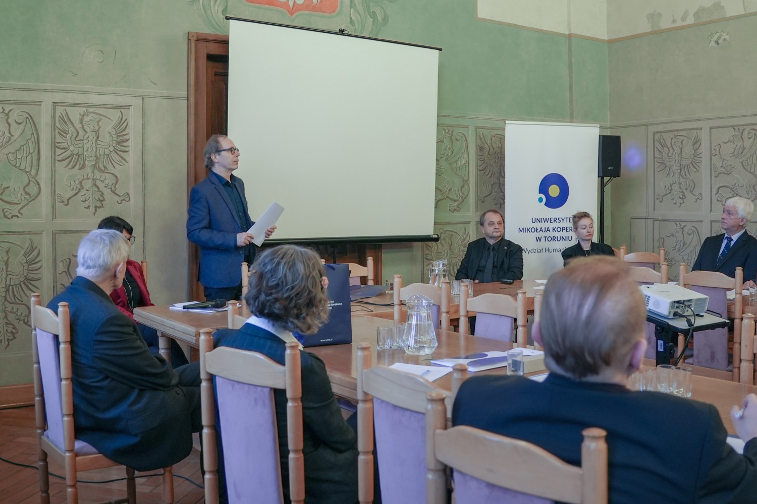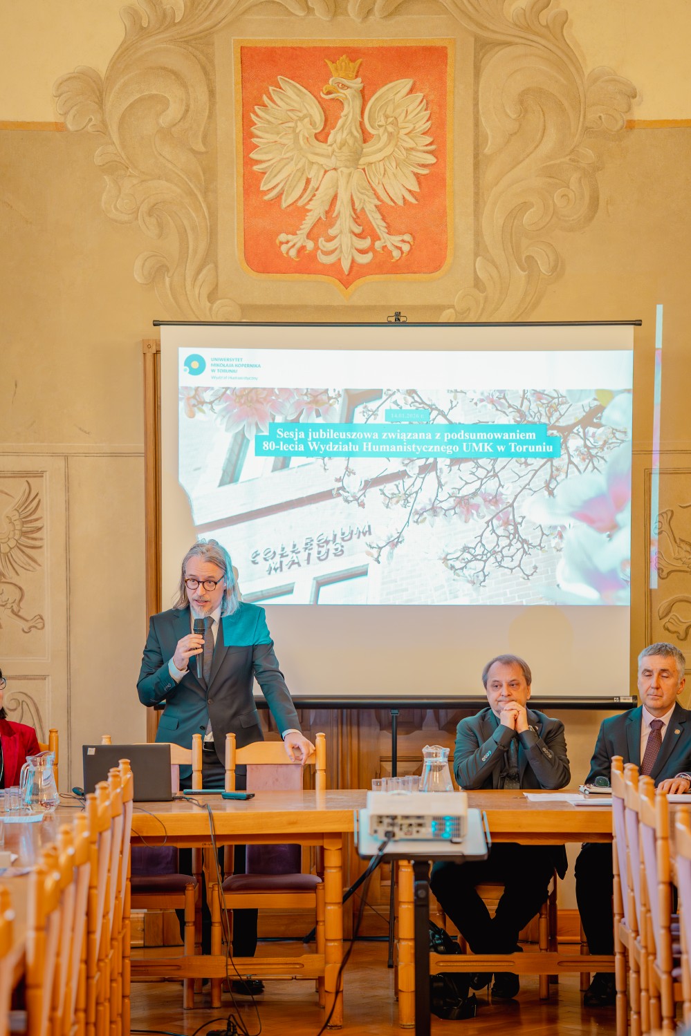 Sesję otworzyła dziekan Wydziału Humanistycznego, prof. Violetta Wróblewska, która przedstawiła dzieje powstania i rozwoju, uwzględniając także działalność Wydziału Filologicznego. Nakreślona została zarówno instytucjonalna historia jednostki, jak i zmieniające się kierunki badań oraz formy kształcenia, które przez dekady współtworzyły tożsamość toruńskiej humanistyki. Głos zabrali również przedstawiciele władz rektorskich Uniwersytetu - prorektorka prof. Joanna Kucharzewska oraz prorektor prof. Adam Kola, a także byli dziekani: prof. Adam Bednarek i prof. Przemysław Nehring.