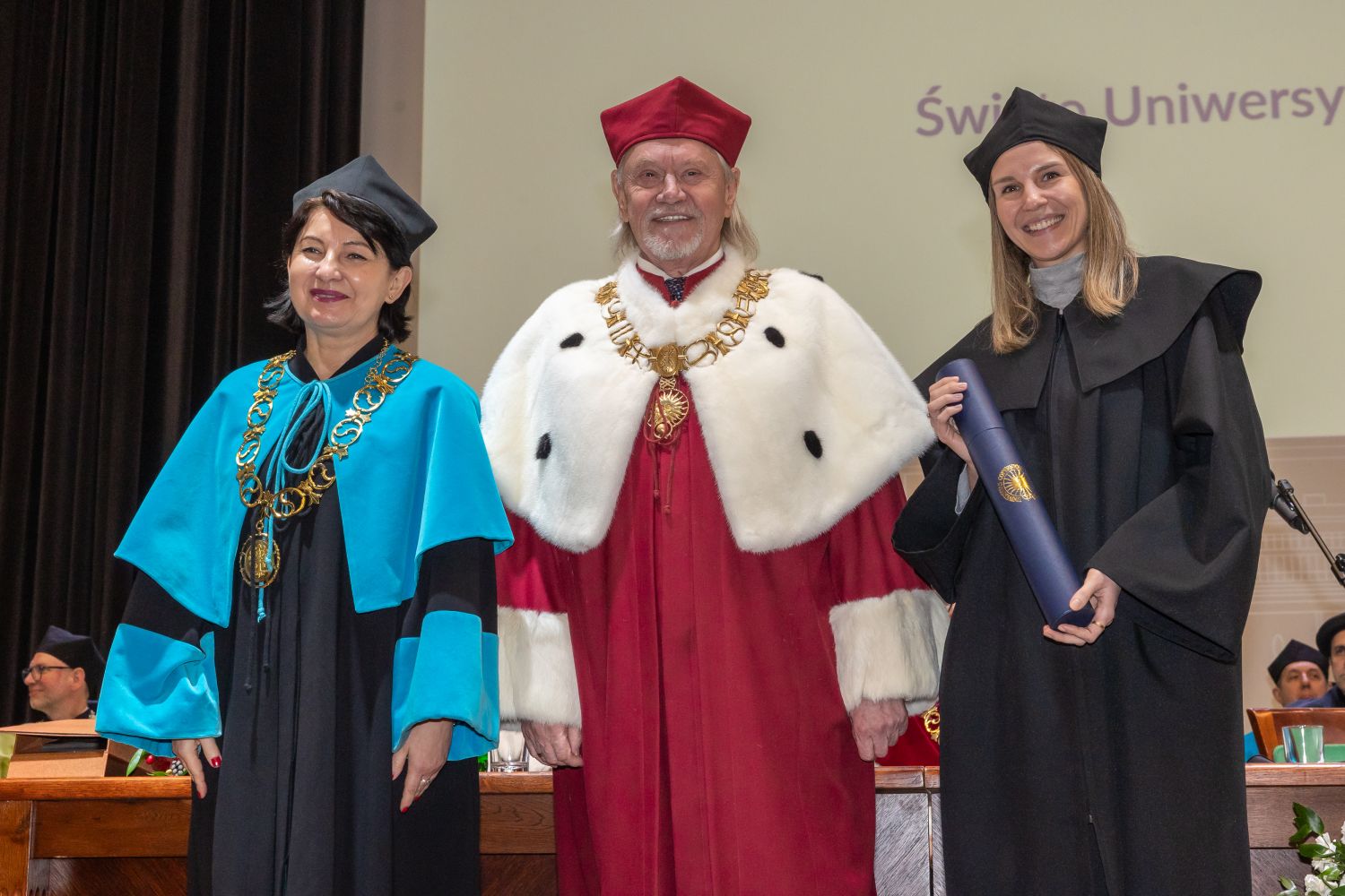 19 lutego podczas uroczystości w Auli UMK nastąpiło także przekazanie dyplomów nowym doktorom habilitowanym oraz promocja doktorska. Do grona doktorów habilitowanych dołączyli dr hab. Katarzyna Chlewicka oraz dr hab. Sebastian Żurowski, prof. UMK, a stopień doktora w dziedzinie nauk humanistycznych uzyskali: